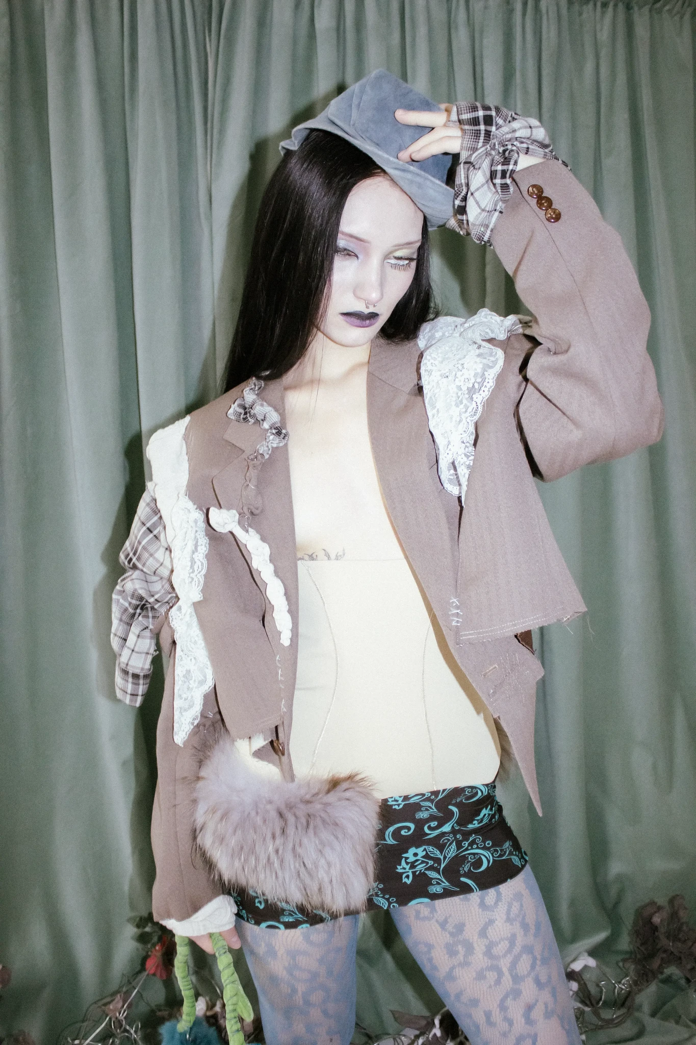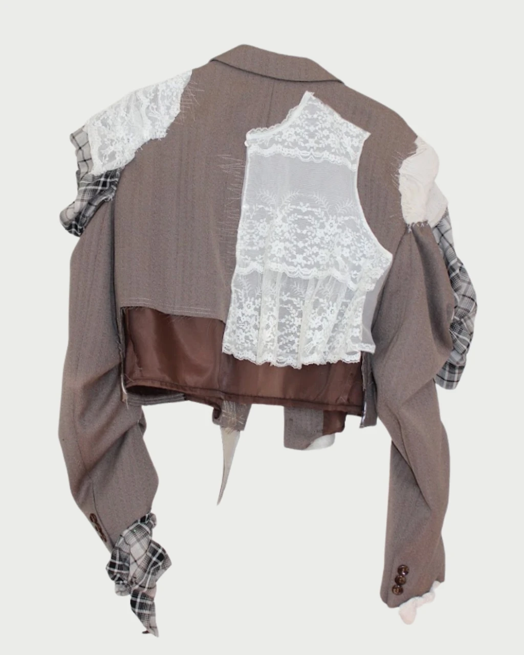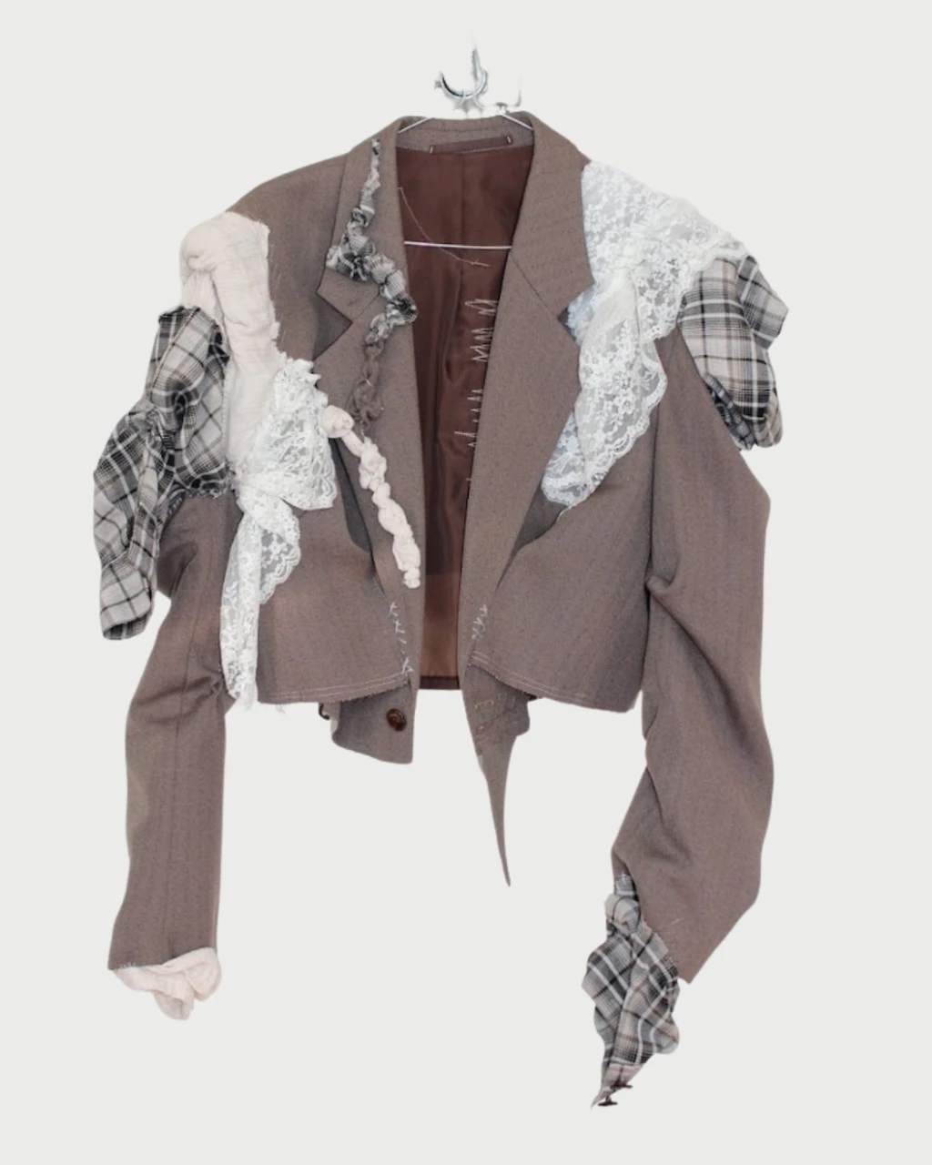 a one-of-a-kind deconstructed blazer covered with fabric layers