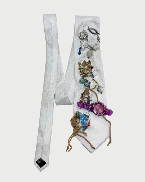 a one-of-a-kind tie accessory with deconstructed jewelry and wire