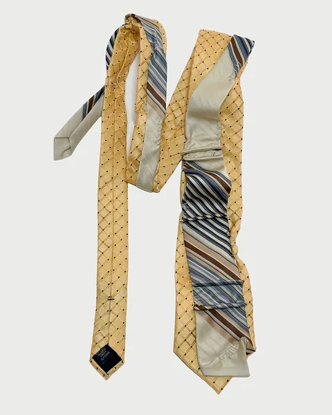 a one-of-a-kind tie accessory with fabric layers and hand stitches